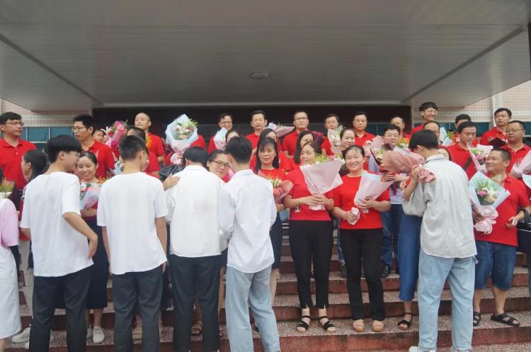 学生的成长离不开老师的辛勤付出,他们用歌声表达万千情感。一首合唱《感恩的心》饱含对恩师、对母校离别的不舍与感激;伴随着动人的音乐,38位高三教师接受了学生的献花和祝福,师生紧紧拥抱,泪眼朦胧。