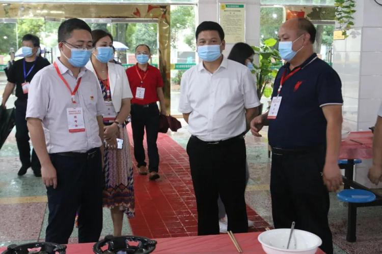 王玉清一行先后来到怀乡中学、华容一中考点和考区保密室,实地查看了视频监控室、保密室、广播室、食堂等重点场所,对考点的安保防疫措施、考场监控、人员配备及后勤保障等情况进行了详细了解。