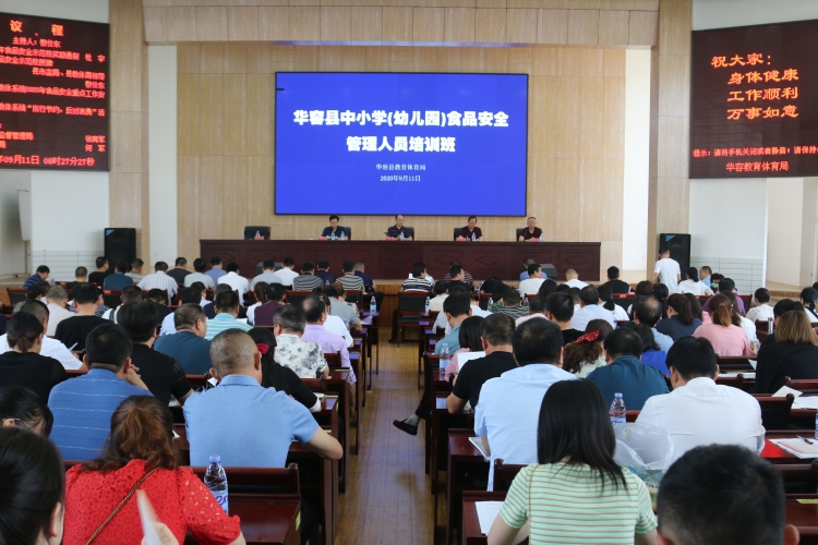 9月11日,华容县教体系统创建“省级食品安全示范县工作推进”“厉行节约,反对浪费”活动启动仪式、中小学幼儿园食品安全培训会在黄湖小学报告厅召开。县教体局副局长何军、县市场监督管理局副局长徐育军,全县各中小学校、公办幼儿园后勤副校长、后勤主任、事务长,民办幼儿园园长近300人参加。