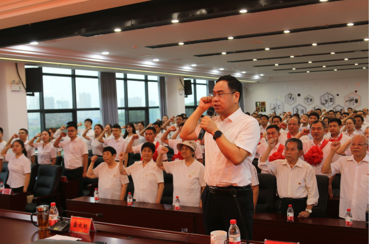 大会在雄壮的国歌声中拉开帷幕。在党委书记、局长龚成明的带领下,27名新党员面对鲜艳的党旗庄严宣誓,全体与会人员重温入党誓词。