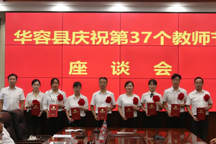9月8日上午,华容县庆祝第37个教师节座谈会在职业中专召开。县委副书记、代县长周鹏,县委常委、县人民政府副县长候选人涂娟,县政府办副主任曾劲松,县教体局局长办公会成员,县教育基金会秘书长李良新以及各学校优秀教师代表参加。