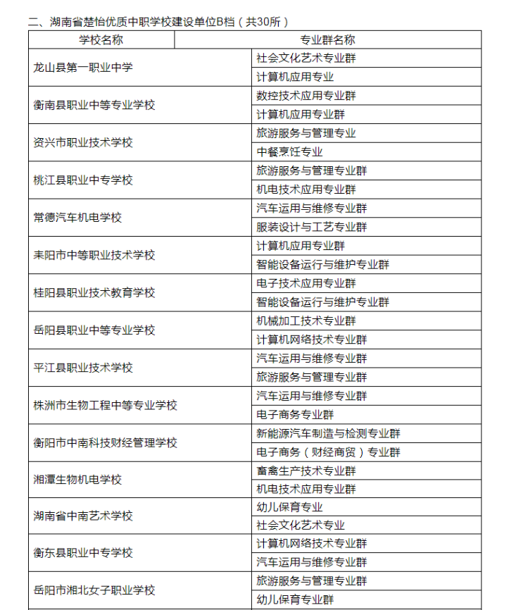 2.湖南省楚怡优质中职学校和优质专业(群)建设单位拟立项名单