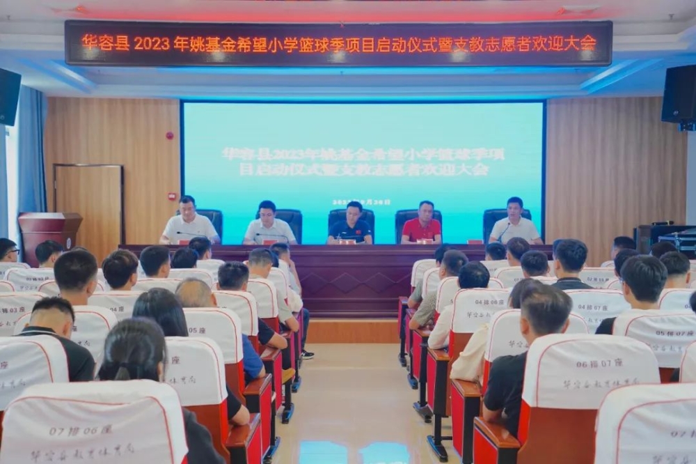 9月20日,华容县举办2023年“姚基金希望小学篮球季”项目启动仪式暨支教志愿者欢迎大会。“姚基金希望小学篮球季”支教志愿者深入22所项目学校开展为期2个月的体育支教服务,组织开展体育基础理论和篮球专项教学、组建篮球队、参与县级篮球联赛等。