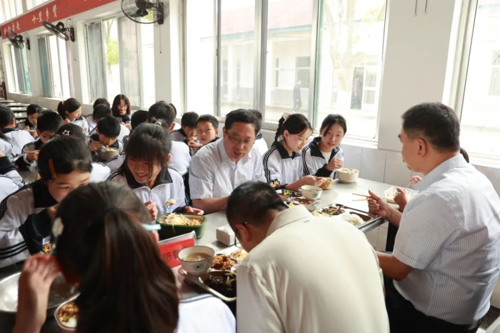 来到万庾中学学生宿舍和食堂,陶伟军详细了解卫生环境、用水用电安全和“校园餐”供餐流程,并与学生们共进午餐,面对面征集菜品改进建议。