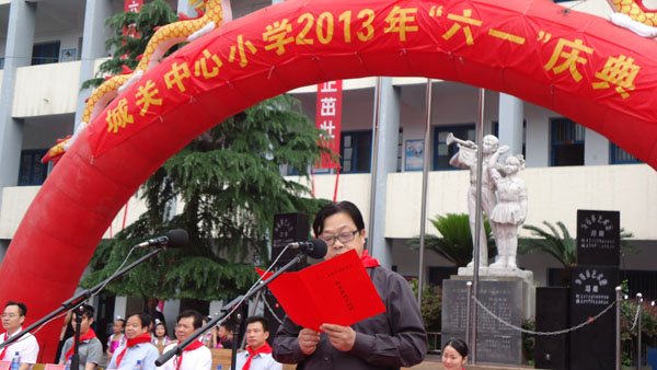 5月31日上午,城关中心小学在学校操场隆重举行“六一”庆典活动,全校1300多名师生和家长共同欢度“六一”国际儿童节。县人大、政府、政协相关负责人出席了本次活动,教育局副局长周金华做了重要讲话,学校校长张继凡向各级领导、家长就学校的工作做了全面的汇报。(陈艳红)