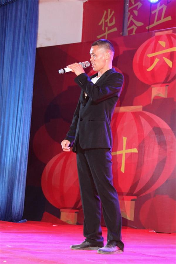 晚会在配乐诗朗诵《和谐五中、魅力五中》高亢激昂的声调中拉开帷幕,为伟大祖国67岁生日、母校60华诞献上了热情的祝福。校长孙永友在接下来的致辞中表达了对校友的欢迎和感谢,祝愿祖国繁荣昌盛,祝愿五中灿烂辉煌,祝愿全体校友、师生员工身体健康、万事如意。晚会声情并茂地回顾五中60 年风雨历程,歌颂今日辉煌成就,展现五中学子精神,展望未来多彩篇章,从北京赶来的校友严定安用吉它弹唱表达了在外游子对母校深情的怀念,也表达了校友们同心同德推动母校事业不断前进的坚定信念.