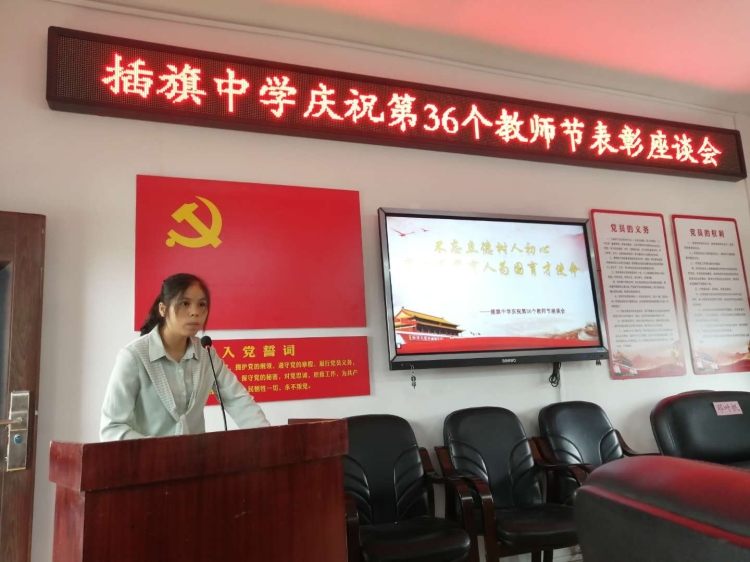 又逢金秋九月,老师们迎来了第36个教师节。9月10日上午,插旗中学召开教师节表彰座谈会,对我校涌现出的四有好教师、优秀班主任、师德标兵、扎根边远教师进行表彰,进一步树立了全校尊师重教,教师光荣的鲜明导向。