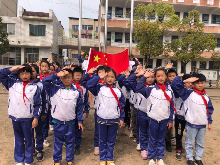 鲜艳的五星红旗迎风飘扬,操场上高年级的孩子们正在开展“我与国旗合影”活动,孩子们将五星红旗护在中间,摆出各种各样的造型与国旗合影,为祖国祝福。国旗在一张张笑脸的映衬下显得更加光彩夺目。