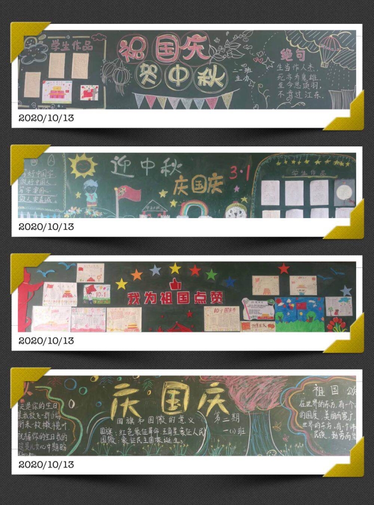 同学们绘制了“庆国庆”为主题的黑板报和手抄报,为祖国母亲献上了一份多姿多彩的礼物。