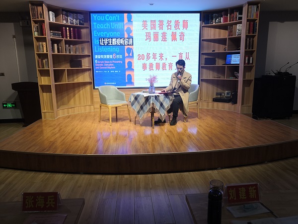 活动伊始,南山中学校长魏忠仁致辞。分享会上,17名老师真诚交流,畅谈教育理想,抒发读书感言,分享美文著作和教育故事。南山中学的罗昊老师谈到有幸拜读了美国著名教师玛丽连.佩奇撰写的《让学生都爱听你讲》,顿时感觉醍醐灌顶,如梦初醒。教育需要责任和情怀,无论是什么工作,什么岗位,能把平凡的事做好就是不平凡,每个教育人都要做一个让学生都爱听你讲的教师。华兴小学的刘嘉玲老师拜读了郑杰老师的《忠告中层——给学校中层管理者的47封信》,这本书告诉我们,管理具有变通性,其背后不纯粹是管理问题,而是一个处于“夹缝”中的人,如何在社会交往中修炼自己的品性、言行、学识、修养的综合实践问题。整个分享会在感动、温馨、激励中进行。