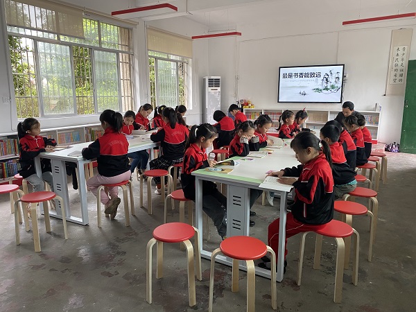每位在阅览室读书的学生,脸上都洋溢着毫不掩饰的自豪,因为只有前两周每班的“每周一星”,才能获得阅览室读书的机会。此举旨在激励其他同学奋发图强,争取下次的机会。