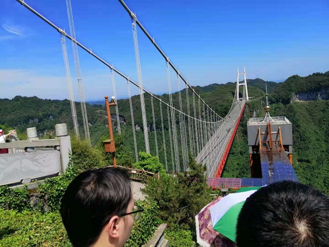 众人来到矮寨大桥,导游进行现场教学。在导游的讲解下,党员们了解到这座桥架起致富之路,从脱贫攻坚到乡村振兴,矮寨大桥见证了周边的巨变。