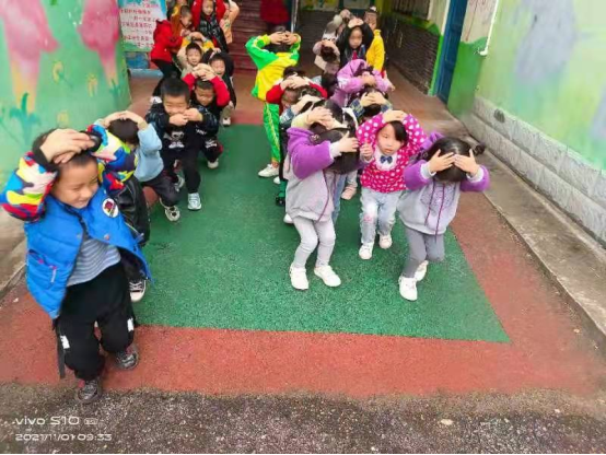 11月1日上午,注滋口镇中心幼儿园开展防空防灾应急疏散演练活动。