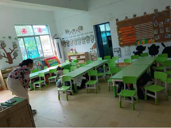 随着防空警报的响起,老师立即停下手中的工作,各就各位,按照既定路线组织幼儿有序地撤离到安全区域。