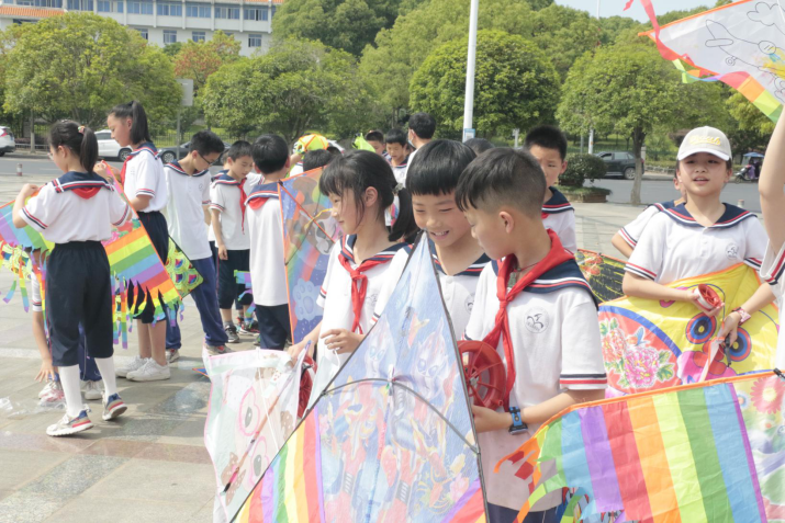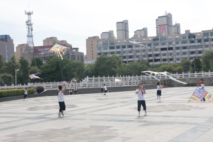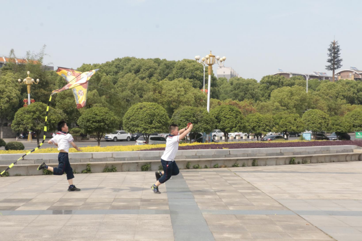 “去放风筝啦!”一大早,学生们带着各式各样、五颜六色的风筝,排着整齐的队伍向着人民广场出发,时不时相互讨论着谁的风筝更漂亮、更容易飞起来。