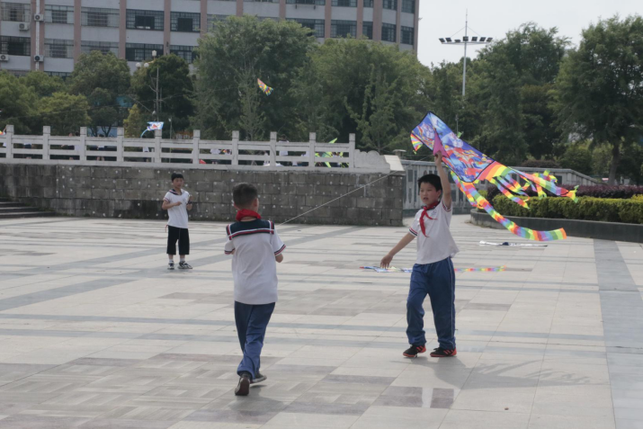 学生们不懈地努力,一次又一次的尝试,更多的风筝飞上了蓝天,在云霄里翱翔,像彩蝶一般在空中翩翩起舞,争奇斗艳,缤纷多彩的风筝吸引了学生们好奇的目光,灿烂写在一张张稚嫩的脸上,广场上留下了不停地追逐风筝的脚步声、阵阵欢笑声和帧帧童年美好的记忆。