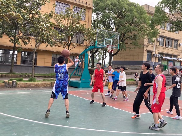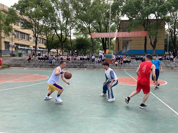 为缓解九年级学生心理压力,6月13日下午,南山中学举行九年级趣味减压师生篮球友谊赛。