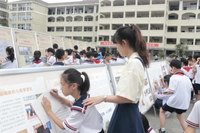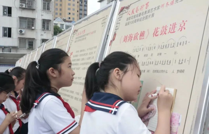 在学校启智广场,一排排图文并茂的宣传展板格外引人注目,师生们在宣传展板前驻足观赏,了解华容县的非物质文化遗产,互相交流,沉浸于华容非物质文化遗产的深厚底蕴之中,折服于传统文化的博大精深。