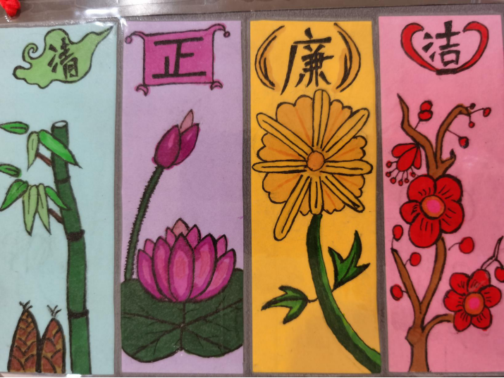 一张张精美的书签和剪纸以画传义,传递着清风正气与廉洁自律,让人惊叹于孩子们的心灵手巧,更庆幸 “清廉”已犹如一股股清泉,洗涤着马鞍学子的灵魂。