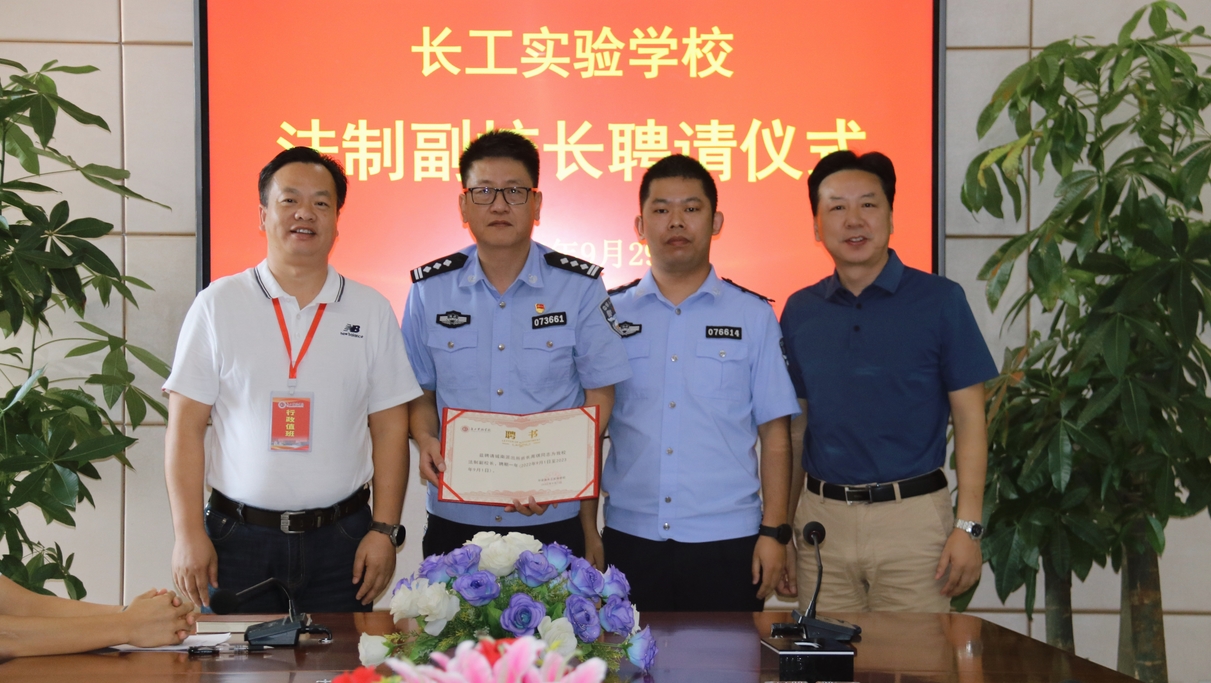 9月29日,长工实验学校“法制副校长聘任仪式暨法制进校园专题宣讲活动”在图书馆5楼会议室隆重举行。学校德育副书记钟垒彬主持仪式,学校班子成员参加,城南派出所所长周琪、副所长吴松及相关部门同志应邀出席。