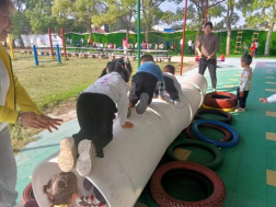 2022年,幸福中心幼儿园作为华容县乡镇幼儿园“安吉游戏”试点园之一,在县教体局和县四中领导的高度重视下,有效安排部署“安吉”玩具快速到园,并要求老师们积极探索教学新模式、新方法,经过不断尝试、实践、改进,成功让这一富有特色的户外“安吉游戏”新模式在幸福中心幼儿园落地见效。