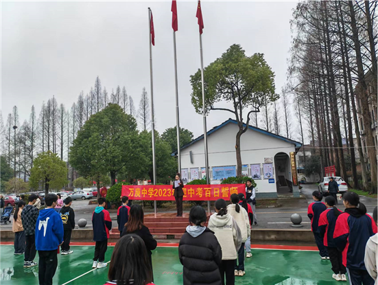 为鼓舞师生士气,点燃中考奋斗激情,坚定决胜中考的信心,3月8日,在距离2023年中考100天的日子里,万庾中学组织九年级全体师生举行“中考百日誓师”大会。
