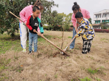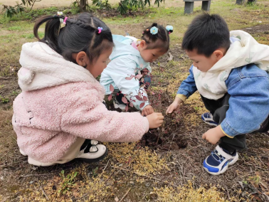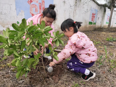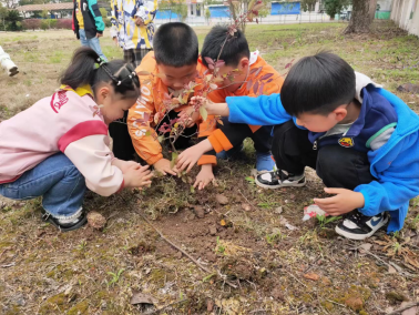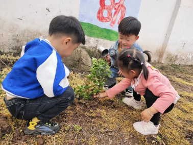 之后,大班的孩子们在老师的带领下,在幼儿园的边角空地上,用锄头、铲子挖坑,热情高涨。中班和小班的宝宝们则帮着哥哥姐姐培土、浇水,一起种下一颗颗希望之树。