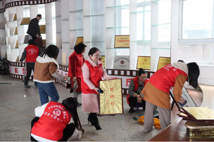 党支部结合文明创建开展了党员志愿服务实践活动,对学校及校园周边区域卫生进行了打扫。活动中,党员教师充分发挥“不怕脏,不怕累”的志愿服务精神,忙碌在校园内及校园周边的各个角落,有的负责清除杂物、有的负责擦学校荣誉墙、有的负责打扫地面、有的则负责搬运垃圾,一个个忙得不亦乐乎。