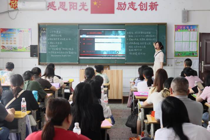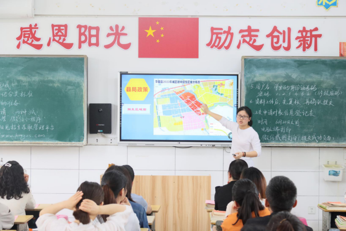 接着,班主任运用视频、课件、现场操作展示等多种形式,宣讲我县2023年小升初的阳光招生政策、 “华容都管入学一件事一次办”微信小程序的使用、微信小程序及电脑端网上志愿填报的操作方法,并对阳光招生注意事项进行了强调。