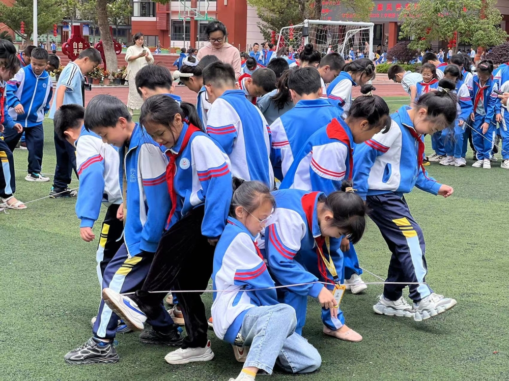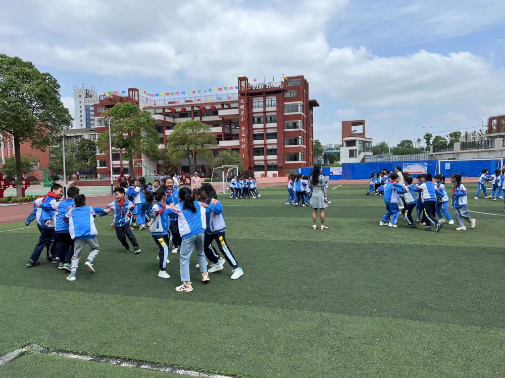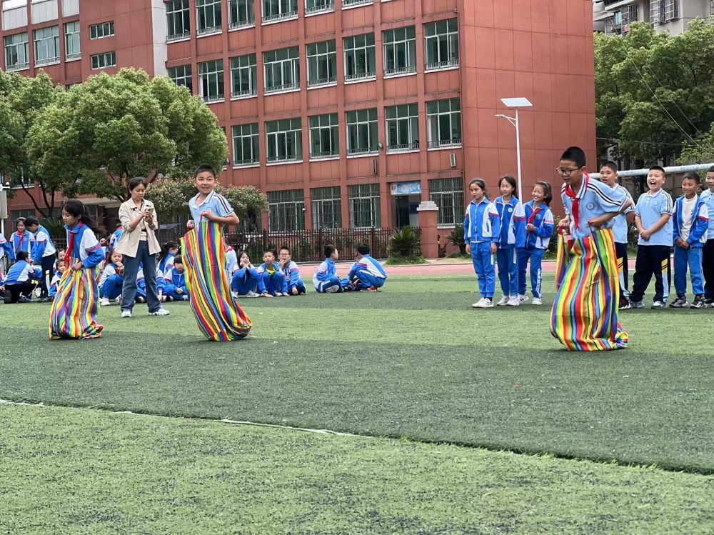 本次活动根据学生的年龄特点,安排了“桃花朵朵开”“袋鼠跳”“珠行万里”“逃脱困境”等游戏项目。活动伊始,学校相关负责人以“桃花朵朵开”作为暖场游戏,让大家迅速放松身心,从活动中感受主动交往的快乐。“袋鼠跳”游戏掀起高潮,学生化身为一只只身轻体健的小袋鼠,向终点冲刺,一次次摔倒,一次次爬起,为了集体的荣誉而战,表现得非常顽强与勇敢。