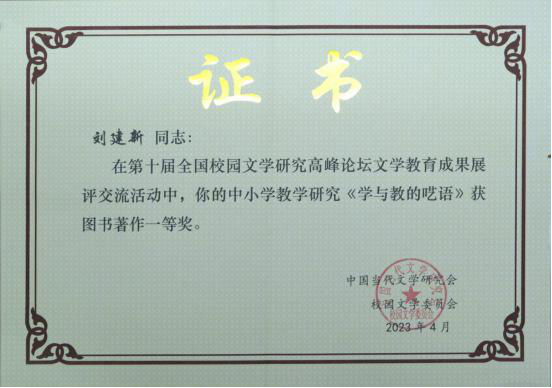 党委副书记、副校长刘建新的著作《学与教的呓语》获一等奖。