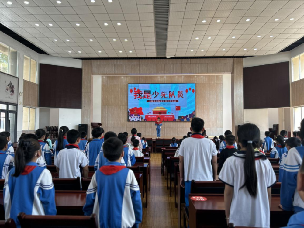 学校少先队以大队为单位,举行“红旗下的誓言”大队会。学校主要负责人向全体少先队员致节日祝词,大队辅导员带领队员宣誓。