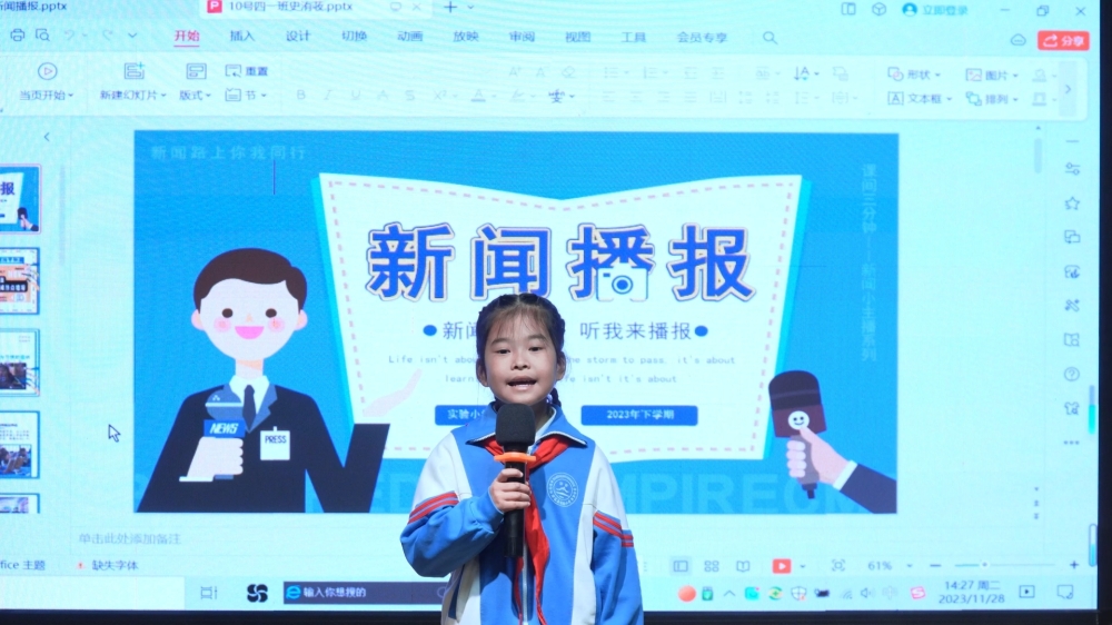 11月28日,实验小学组织四年级学生开展课前三分钟——我是新闻小主播的展示活动。