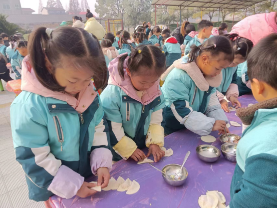 在老师的指导下,孩子们认真学习包饺子的步骤和方法。孩子们包的饺子姿态万千,形态各异,在品尝自己的“劳动成果”时,孩子们脸上洋溢着兴奋与满足。