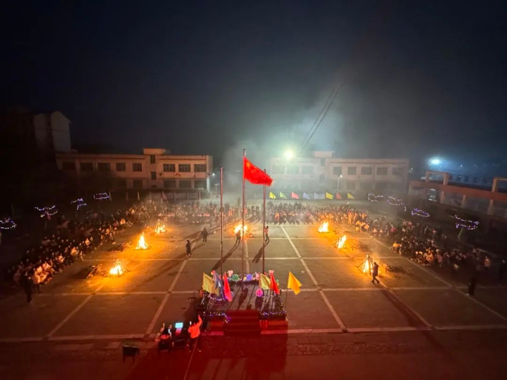 学校负责人向全体师生致以最诚挚的问候和最衷心的祝福,并宣布点火。老师们高举熊熊火焰一起点燃篝火,顷刻间火堆照亮了整个操场,迸发出的一簇簇火花,火光映照在师生笑脸上,随着烟花的绽放,整个操场上响起了热烈的掌声和欢呼声。