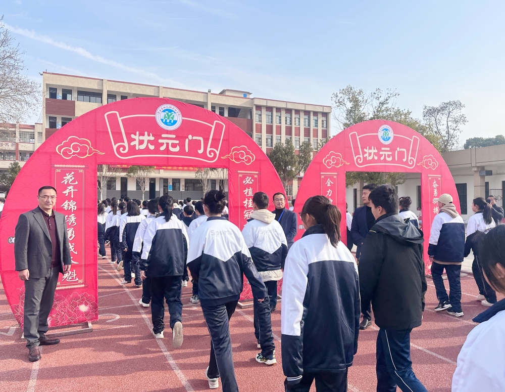 学校相关负责认为各班授旗,为中考百日倒计时牌揭牌。“明确目标,积极向上……”伴随着响彻云霄的誓言,老师和同学满怀信心、斗志昂扬地冲过了状元之门,一同迈向更加璀璨辉煌的未来。