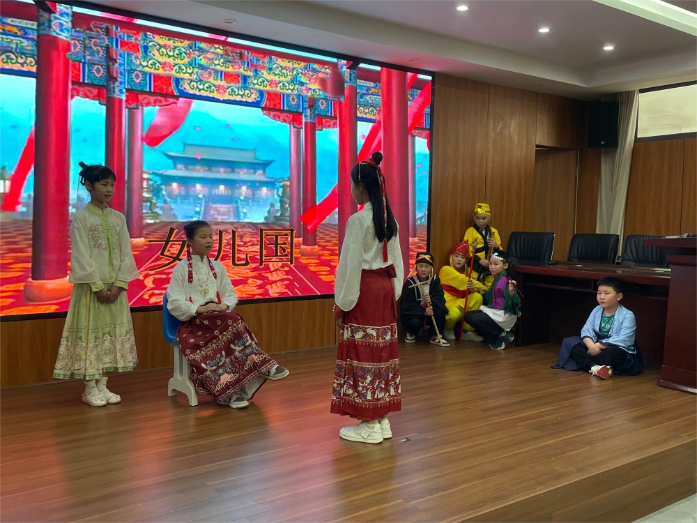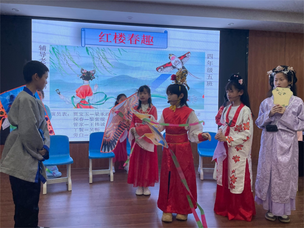 在比赛中,各个班级的学生们经过精心准备,将《红楼梦》《西游记》《三国演义》和《水浒传》中的经典选段生动地呈现在舞台上。
