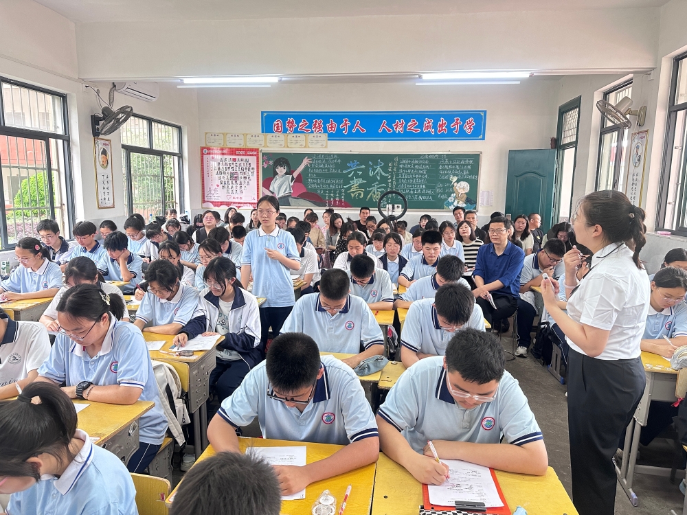 课后,同组的老师们进行深入的学科交流研讨。岳阳市教科院教研员何小妹在英语学科研讨会上与大家交流教学经验,要老师们注重训练学生听说读写的语言综合能力和学生批判性思维。“采他山之石以攻玉,纳百家之长以厚己……”县教研室教研员毛学龙畅谈语文中考复习策略。县教研室教研员李飞龙带领地理学科的老师们从高深的教学理念到谈到常态化教学设计,从课堂教学亮点谈到学生学科素养的提升。