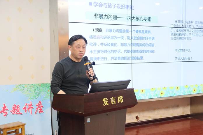 家长学校副校长刘烨作主题为《调准目标,培养心目中的优秀孩子》的六年级家庭教育专题讲座。他从“临近毕业,如何监管孩子的学习与生活?”“如何有效沟通,学会与孩子友好相处?”“小学毕业了,如何调准孩子的培养方向与目标”等方面做了深入浅出的讲解,为家长们提供了一系列行之有效的家庭教育方法与途径,有效缓解了家长因孩子升学、青春期等问题带来的疑惑和焦虑。