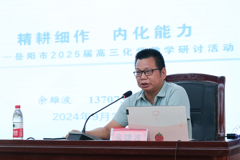 岳阳市教科院副书记、化学教研员余雄波作了《精耕细作,内化能力》的专题讲座,就高三化学学科一轮复习备考教学及教研重点工作等方面进行了部署。