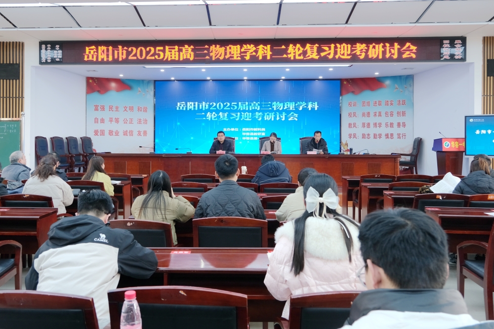 2月25日,岳阳市2025届高三物理学科二轮复习迎考研讨会在县一中举行,市教科院副院长、物理教研员袁丽,县教研室相关负责人以及来自岳阳各县市区高中学校的物理骨干老师齐聚一堂。