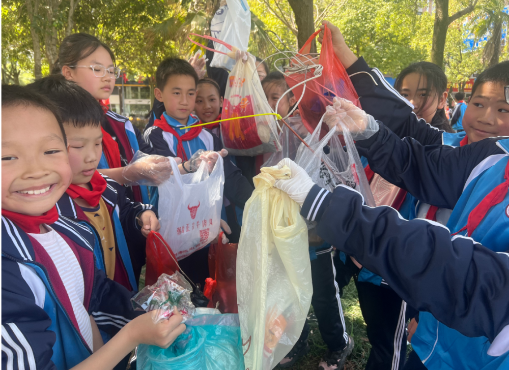 与此同时,400多名学生志愿者在人民广场铺开"青春方阵"。学生们以班级为单位,手持垃圾分类夹、可降解垃圾袋,沿广场中轴线向四周辐射清扫。银杏树下,女生们跪地清理砖缝里的瓜子壳;喷泉池边,男生们用长柄夹打捞漂浮的塑料袋;两小时活动中,学生们累计清理垃圾18袋,分类准确率达92%。
