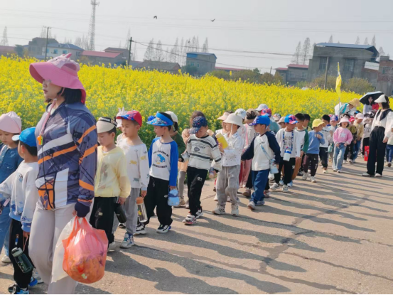 活动当天,阳光明媚,孩子们个个兴奋不已,迫不及待地想要开启这场春日之旅。在老师的精心组织下,小朋友们排着整齐的队伍,前往踏青目的地。