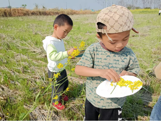 到达目的地后,孩子们被眼前的美景所吸引。嫩绿的草地、盛开的花朵、飞舞的蝴蝶,构成了一幅生机勃勃的春日画卷。在老师的引导下,孩子们分班进行了丰富多彩的活动。大班孩子们自制彩带,和小伙伴们一起在田间自由奔跑,感受春天的气息。中班的宝贝们则是采摘田间美丽的野花,制作了一把把花叶相间的凉扇,而我们小班的弟弟妹妹则是利用小小的袋子,做成了一个个迎风飞舞的趣味风筝 草地上,孩子们像欢快的小鹿,你追我赶,笑声在春风中肆意飞扬。