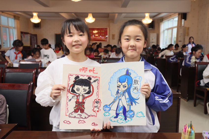 比赛现场,参赛选手们或凝神构思,或挥毫泼墨,将哪吒的经典形象与个人创意巧妙融合。低年级学生用斑斓色彩描绘出“哪吒逆天改命”的童趣场景,高年级学生则通过细腻的笔触刻画“莲花重生”“魔童闹海”等故事片段。水墨、彩铅、数字绘画等多种形式同台竞技,传统神话与现代艺术碰撞出绚烂火花。