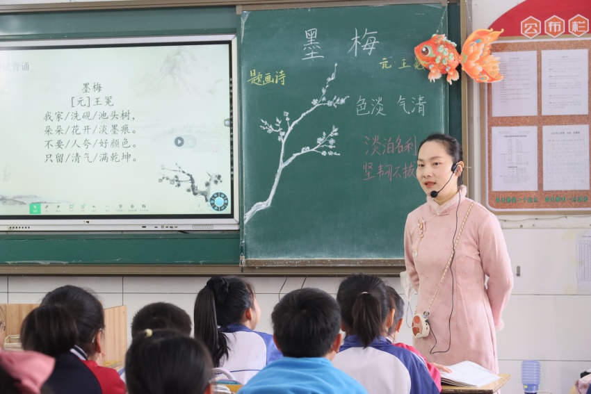 语文组教师以四年级下册古诗《墨梅》为例,立足新课标理念,打破传统古诗教学模式,呈现“诗眼开万象”的教学图景。刘吟夏老师以文化溯源,传承梅韵;陈琴琴老师以情境任务驱动语言实践;呙瑶老师由语文跨越到科学析梅、美术绘梅,体现了多学科融合;龚渴老师创设了“探楷模精神之光,绘少年风采之卷”的大单元教学情境;朱青苗老师带领学生对比“清气”与“香气”、“淡墨”与“艳色”,细品诗人之志;鲍倩文老师利用AI技术赋能传统诗词,形成了既根植传统又面向未来的教学设计。
