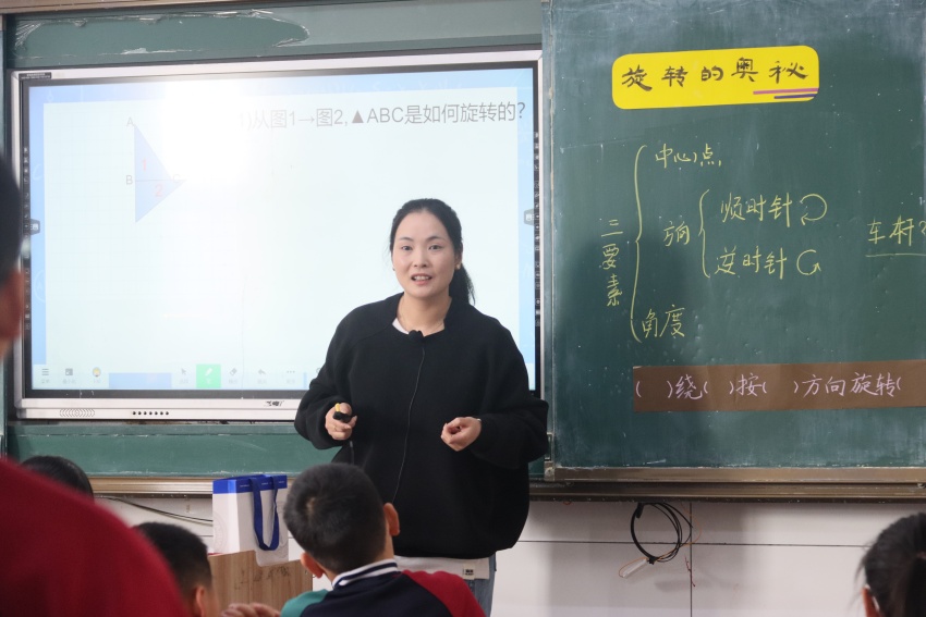 数学组教师基于新课标理设计《图形的运动(三)》单元教学,通过结构化教学策略实现知识建构与核心素养的双重落地。易媛媛老师学情诊断锚定目标(旋转三要素),可视化达成路径;蔡青老师创设“数学大富翁”情境(风车/钟表),探究旋转应用价值;谢宇平老师运用“技术赋能+多元表征”策略破解空间观念难点;陈婉老师构建“比较-迁移”链,深化图形运动本质理解。