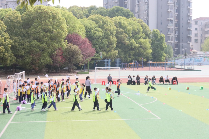 综合组教师以学科为经、素养为纬,编织新课标视下的跨界课堂:扎染非遗实验室中,师生以折叠-浸染-绽蓝三部曲,在靛蓝涟漪里解码东方美学基因;300米耐久跑化身“追风筝的人”,孩子们在奔跑中绽放笑靥,让耐力训练与童趣共舞;吟诵《咏鹅》平仄入曲,以古琴叠合电子音效,在“曲中诗·诗中画”的多维对话中,感受“一诗多韵”的独特魅力。