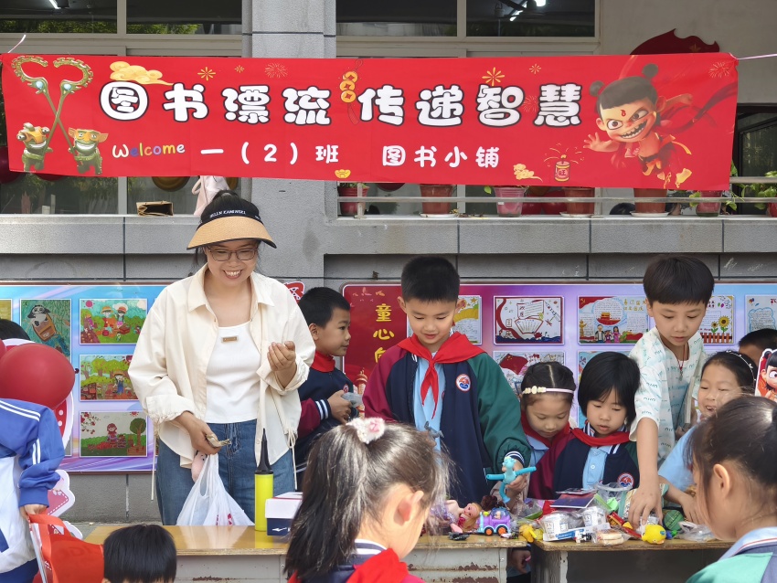 家长智囊团更显神通:爸爸们架起直播设备玩转线上拍卖,妈妈们用绒布扎成童话角色开展即兴相声式推销,让《猜猜我有多爱你》的温馨从书页漫至现实。“淘客”们饶有兴致地在各个摊位前精挑细选心仪的图书,还同“小摊主”激烈地讨价还价。欢笑声、叫卖声、讨价声不绝于耳,整个校园好不热闹。