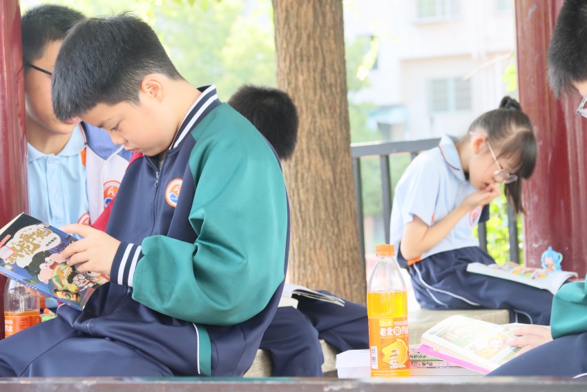 经过一个多小时的欢快交换,每个人的脸上都洋溢着收获的喜悦——有的捧着精心挑选的读物爱不释手,有的已经迫不及待地倚着操场栏杆沉浸阅读。阳光洒落在那些专注的小身影上:他们或盘腿而坐,或倚树而立,完全沉浸在文字的世界里。偶尔,一阵清脆的笑声从书页间漾开,那是小读者们遇见了最动人的情节。这一刻,书香与欢笑声在春风里轻轻摇曳,织就了校园里最美的四月天。(通讯员:程娟、刘思瑶)
